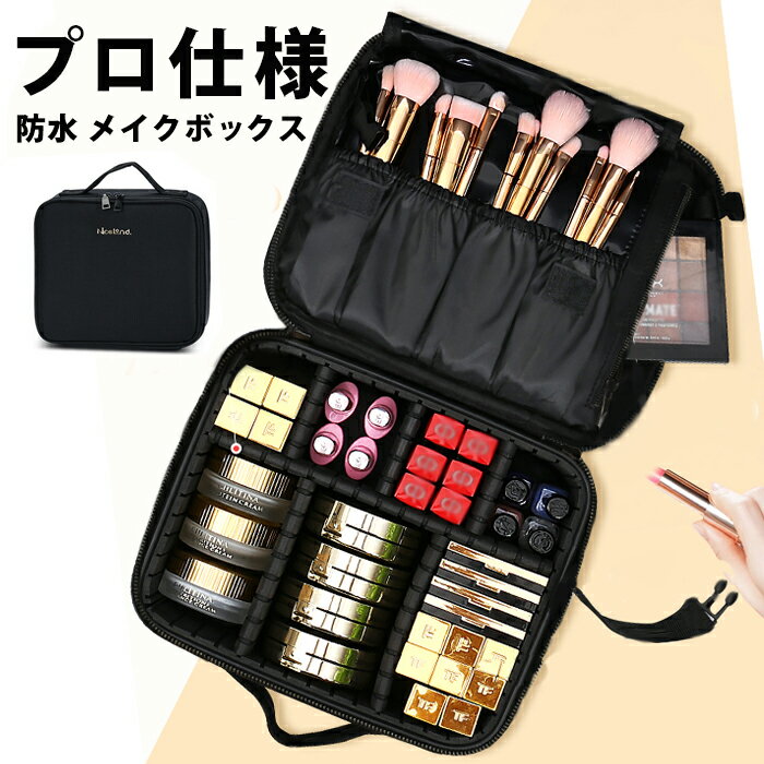 メイクボックス メイクバッグ メイクトランク ショルダーバッグ プロ 機能的 大容量 コスメ メイク 化粧品 ブラシ 仕切り 化粧品入れ 道具 美容 ネイル トラベル コスメバッグ 持ち運び ブラシ入れ バッグ 防水 コスメ収納 軽い 収納 筆 prc-014【P】