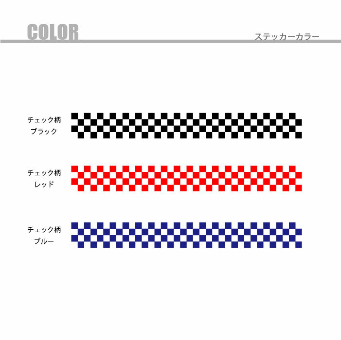 商品説明 商品名 デカールステッカー チェック柄 素材 エアフリーステッカー 屋外用溶剤インジェットプリント UVラミネート加工 サイズ W1350mm×H150mm カラー ブラック・レッド・ブルー おすすめポイント! ・自分好みにカスタマイズできます。